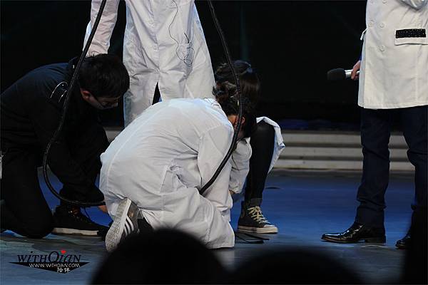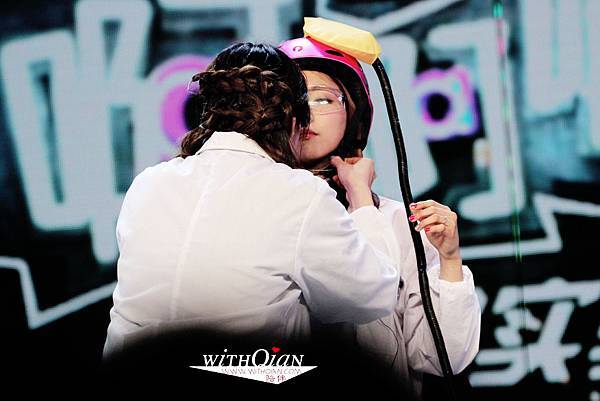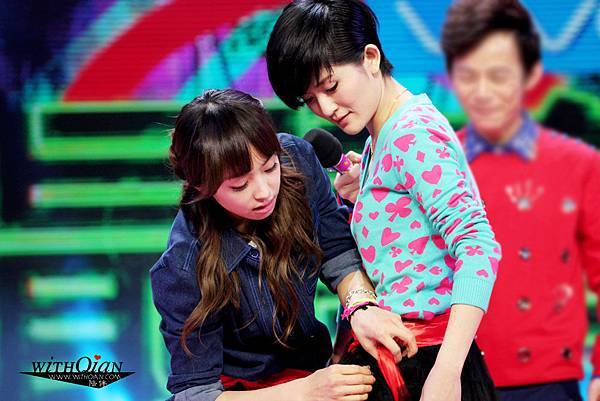 然後到繩子和球的環節,函數玩遊戲輸了,最後是海濤代替了懲罰~ 但是在現場說到輸了懲罰後,茜隊長就直徑走到了球底下準備接受懲罰,然後LUNA走上前想把姐姐替下來~ 之後才是大家看到的~ 海濤代替了妞們懲罰 (謝謝海濤~~~ 海濤很棒)